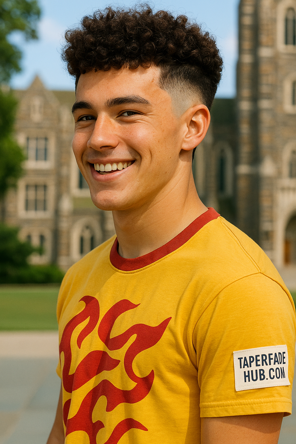4–6 inches of curly hair on top with skin fade sides. Requires daily curl cream and weekly deep conditioning. Popular with Black and mixed-texture hair. High maintenance (weekly touch-ups).